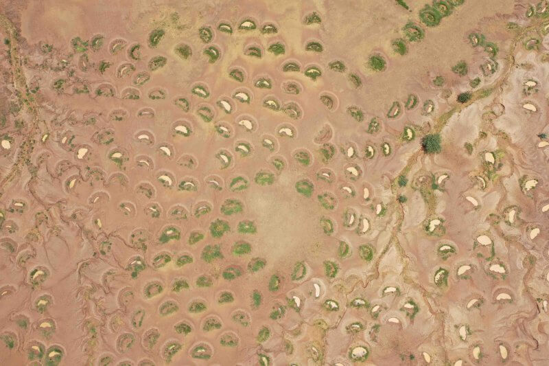 They are dug in our project areas in Africa in order to capture rainwater that will otherwise get washed away over the dry, barren soil. By digging water bunds, we can regreen large areas in a very short amount of time, benefiting biodiversity, nature, people and – eventually our climate.