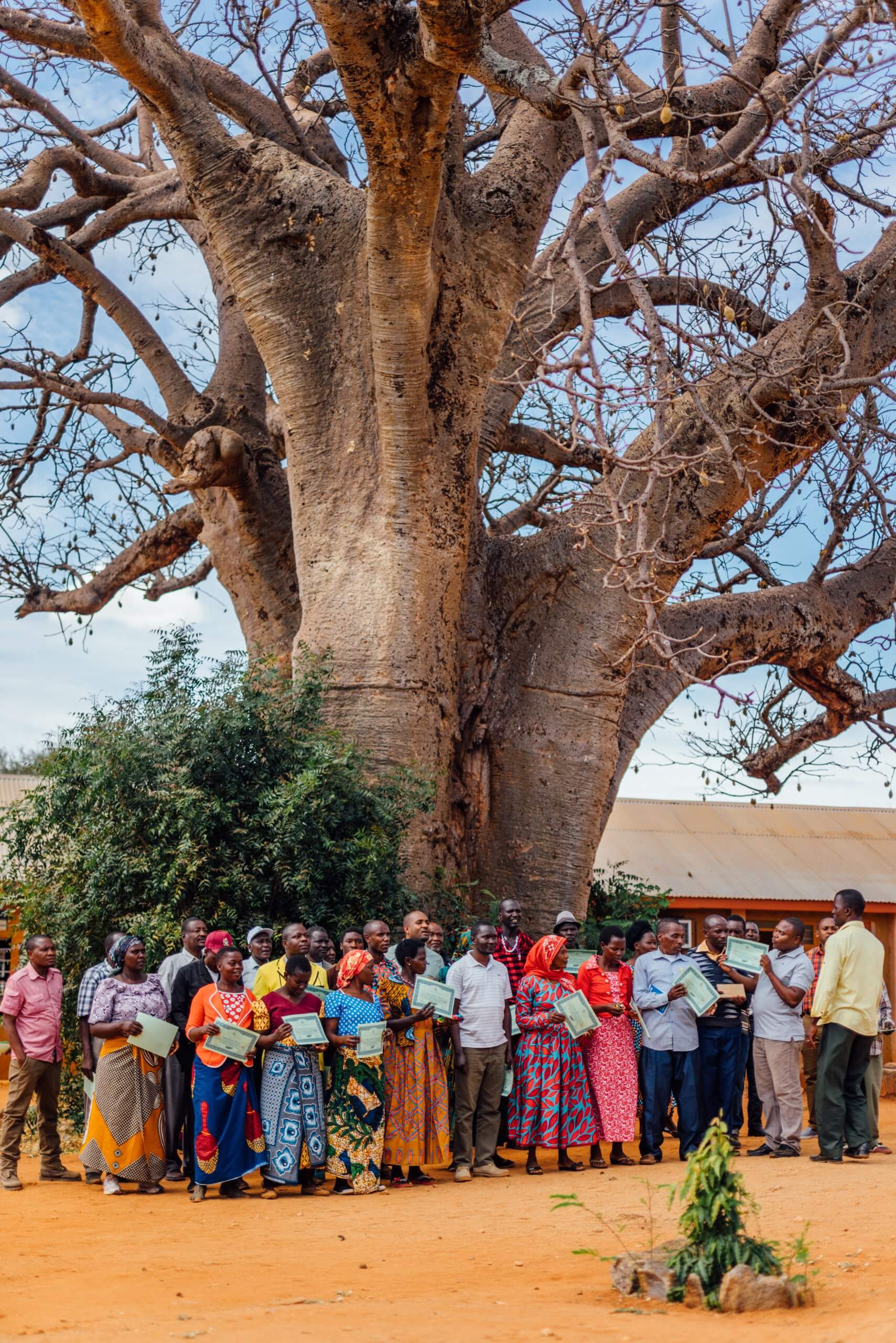 Im Rahmen unserer Mission zur Wiederbegrünung wollen wir Landwirte in Afrika dazu inspirieren und aktivieren, mit der Wiederbegrünung ihres eigenen Landes zu beginnen. In unseren Treecovery Projektgebieten laden wir mehrere angesehene und erfahrene Landwirte ein, am Training-of-Trainers Programm teilzunehmen. Dabei achten wir stets auf eine ausgewogene Aufteilung der Geschlechter. Nach Abschluss der Schulung werden sie zu ‘Champion Farmers’, d.h zu Botschaftern der Wiederbegrünung, die ihre Kollegen in der Gemeinde inspirieren und ihnen zeigen, wie sie mit der Wiederbegrünung beginnen können. Eine weitere Möglichkeit, wie wir die Gemeindemitgliedern zur Wiederbegrünung ihres Landes anregen, ist die Einrichtung von Grassamen-Banken und eine Reihe von Kommunikationsmitteln. Beispiele hierfür sind ein wöchentlicher SMS-Dienst, Film-Roadshow, Wandmalereien und eine App, die Tipps und Tricks zur Wiederbegrünung bietet.