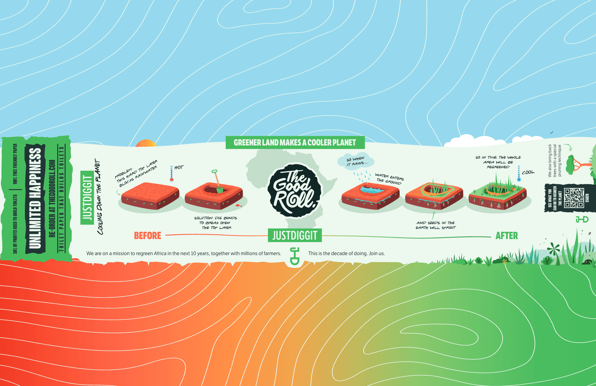 BUNDS Unsere bekannteste Begrünungstechnik! Bunds sind halbkreisförmige Löcher, die Regenwasser auffangen und Erosion verhindern. Durch das Graben von Bunds erhält der Boden die Möglichkeit zu sprießen, was zu einer Rückkehr der Vegetation in dem Gebiet führt. Wenn sie in ausreichendem Umfang durchgeführt werden, hat diese Wiederbegrünung von trockenem und degradiertem Land massive Auswirkungen auf die Natur, den Lebensunterhalt und die Tiere.
