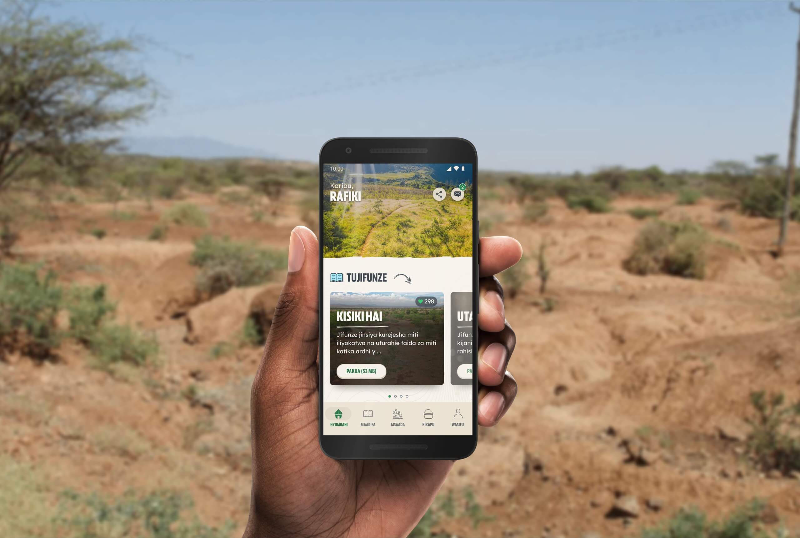De basis van ons digitale platform wordt gevormd door Kijani (‘groen’ in het Swahili), een app die boeren in Sub-Sahara Afrika voorziet van alle tools die ze nodig hebben om hun land succesvol te vergroenen.