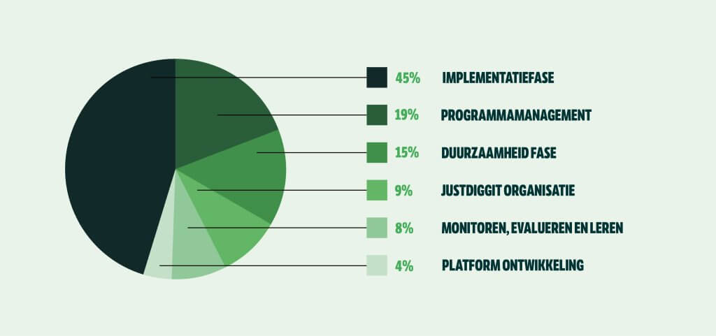 Goed programmamanagement is cruciaal voor het succesvol uitvoeren van een project. Daarom gaat een deel van jouw investering ook naar het beheer van de projecten. Als laatste gaat een deel van de investering naar het monitoren, evalueren en leren van onze bundprojecten. Dit zorgt ervoor dat we onze projecten kunnen blijven verbeteren.